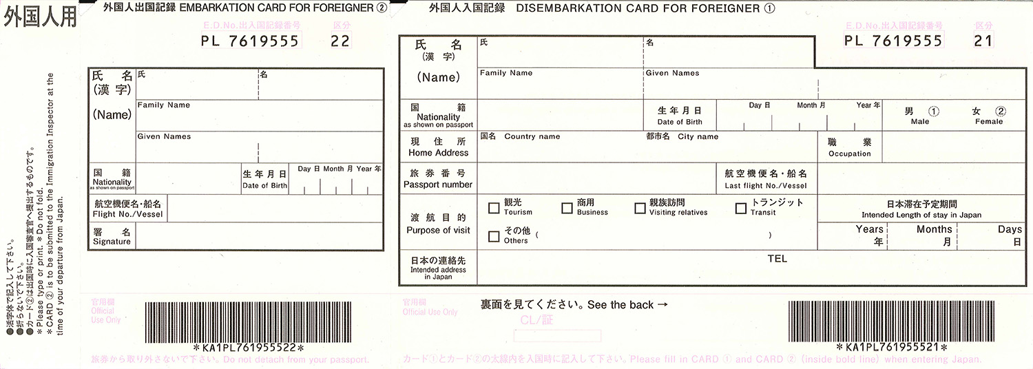 När man kommer till Japan måste man fylla i en lapp med lite all möjlig information (i alla fall på turistvisum), bland annat syftet med resan, hur länge man planerar att stanna, vart man bor i sitt hemland och vad man sysslar med. Dom vill också veta vart man planerar att bo och det var här jag klantade mig lite. Så vitt jag vet finns ingen fast telefon där jag ska bo, så jag ville inte skriva adressen till share-houset. Tänkte att jag lämnar det fältet tomt och hoppas att det inte var ett måste att fylla i det (man kan väl komma dit och boka hotell när man är där?). Det gick dock inte! Han pekade och undrade vart jag tänkte bo, för någonstans måste jag ju ha tänkt att sova? Fiskade i plånboken efter lappen med adressen till guest-houset och tänkte att jag kunde skriva telefonnumret till Kyoto Apartment, som är min hyresvärd. Kom mitt i fiskandet på att jag inte hade skrivit ner det telefonnumret lättåtkomligt x_x Som tur var hade jag kvar ett visitkort från hotellet jag bodde på i Nagoya förra året, så jag visade upp det och sa att jag tänkte bo där första natten och sen åka till Kyoto. Det godtogs och när jag frågade om hjälp att fylla i adressen som bara fanns på japanska sa han åt mig att det räckte med namnet på hotellet (och telefon). Okej, bra, kunde gå vidare och hämta väskorna efter det. Blev lite långt om bara detta, men tänkte det kan vara bra att nämna för dom som inte varit i Japan tidigare och undrar hur det går till. Kan vara bra att förbereda lappar med adresser och sånt. Kom själv ihåg att det var lite petigt med sånt här sist gång också, men denna gången stod jag ju där utan telefonnummer att skriva dit. Hade säkert gått bra med hyresvärdens nummer, men den lappen hade jag självklart lagt i ett annat fack i handbagaget under massa andra grejer…