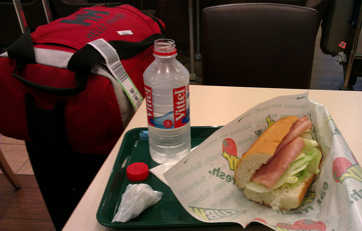När jag var färdig med alla moment efter landning var klockan runt 9:30 och jag ville äta frukost en gång till. Flygplansfrukosten var inte lika god som “lunchen”, även om den var ätbar och helt okej. Den mättade dock inte tillräckligt, så jag gick till Subway som jag visste låg där sedan förra gången jag landade i Nagoya. Snabbt, enkelt och gott! Mätt och belåten knallade jag vidare till tågstationen och hoppade på första bästa tåg mot Nagoya Station. Det tog runt 40 minuter och gick hur smidigt som helst trots dubbla väskor. Var dock glad att jag inte hade två gigantiska väskor, utan bara en och en bag som jag kunde sätta ovanpå den andra. Blev lite trångt mot slutet, men det gick bra ändå. Kan dock säga att det var ganska jobbigt att kånka på runt 40 kg packning upp för alla trappor (fanns bara rulltrappa på vissa ställen). Varmt var det också, så jag blev ganska svettig.