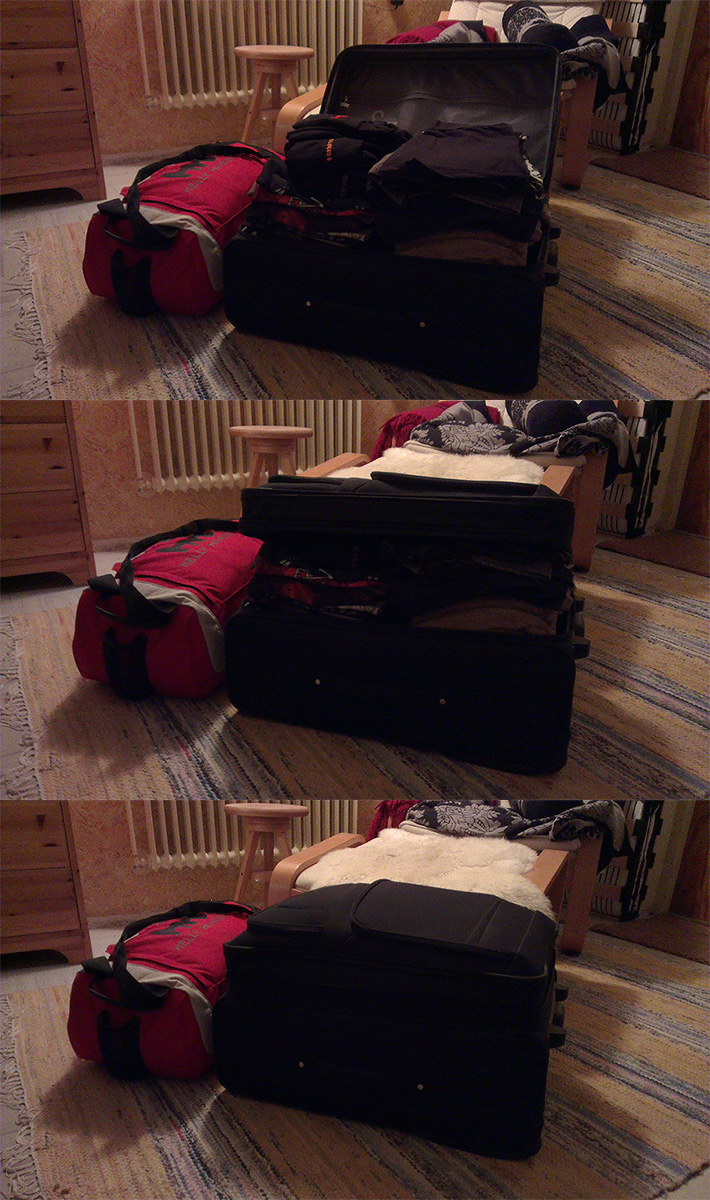 Igår och idag har jag fixat det mesta som var kvar att göra innan avfärd. Satte på mig kläder jag kan slänga för att slippa ha med mig smutstvätt när jag tar på mig rena kläder imorgon, tvättade allt annat och packade om väskorna. Redan när jag köpte flygbiljetten köpte jag också till plats för en extra väska på flyget, men istället för att ha två stora resväskor som jag tänkte först kommer jag ha en “riktig” och en sportbag. Kändes som att jag skulle få med mig för mycket prylar annars… Som jag skrev tidigare blev den stora resväskan lite överfylld sist jag provpackade, så jag var tvungen att flytta om lite. Fick faktiskt bort mer än 3 kg utan att ens plocka bort några saker, bara genom att fördela packningen bättre mellan väskorna. Nu klarar sig alltså väskan under viktgränsen på 23 kg, så jag är toppennöjd! Skrev också ut lite viktiga papper jag ska ha med mig och kom på att jag glömt anmäla utlandsflytt till Skatteverket. Grejen var att jag räknade med att kunna göra det online som med vanlig flyttanmälan, men det gick visst inte! Fick fylla i ett papper, skriva under och skicka in med gammal hederlig snigelpost istället. Skulle gjort detta senast en vecka innan jag åkte egentligen, men det är som det är! Flyttar imorgon gör jag ändå ^_^