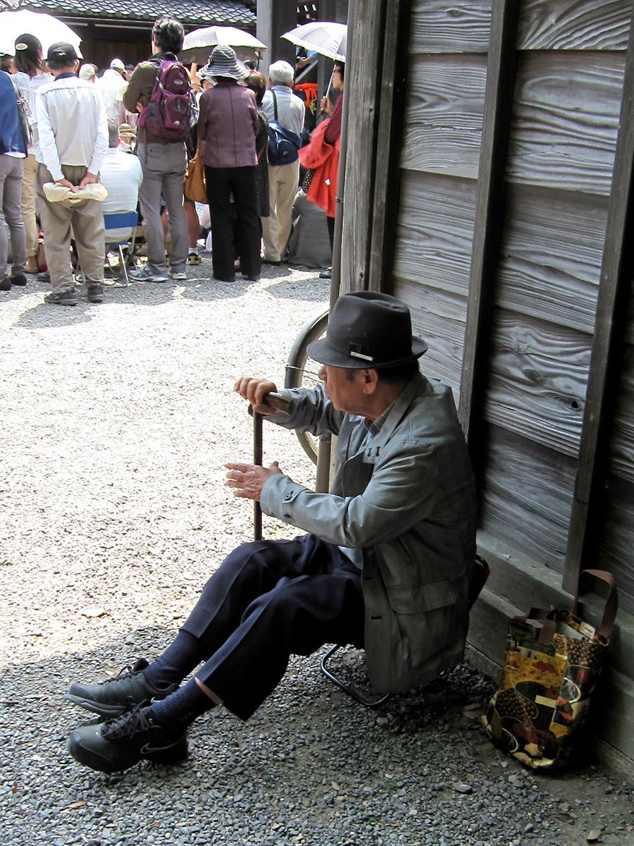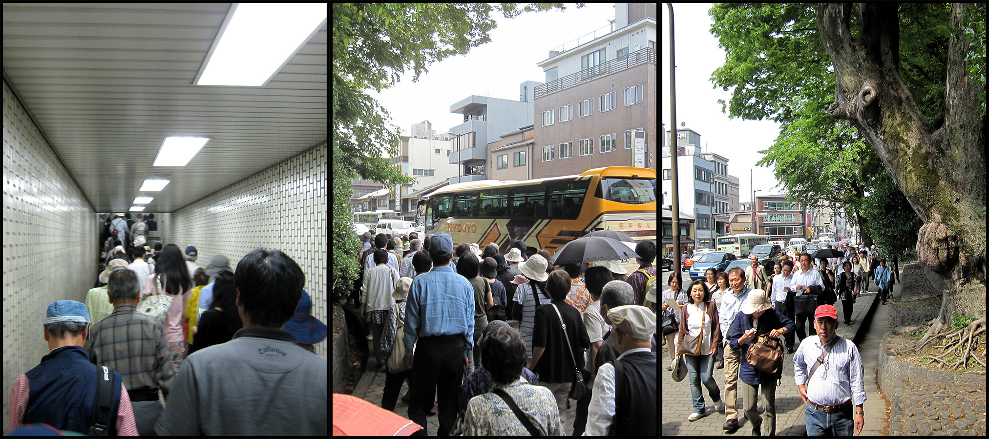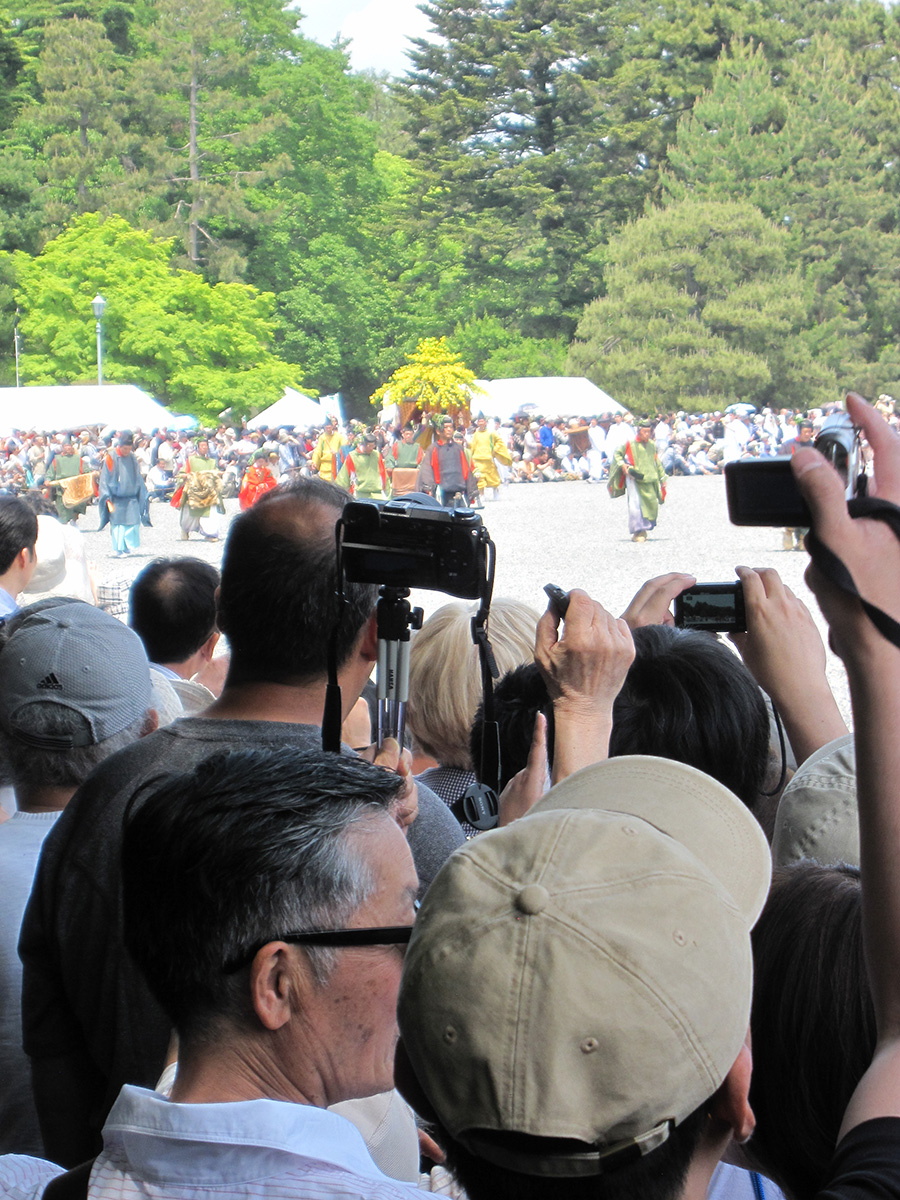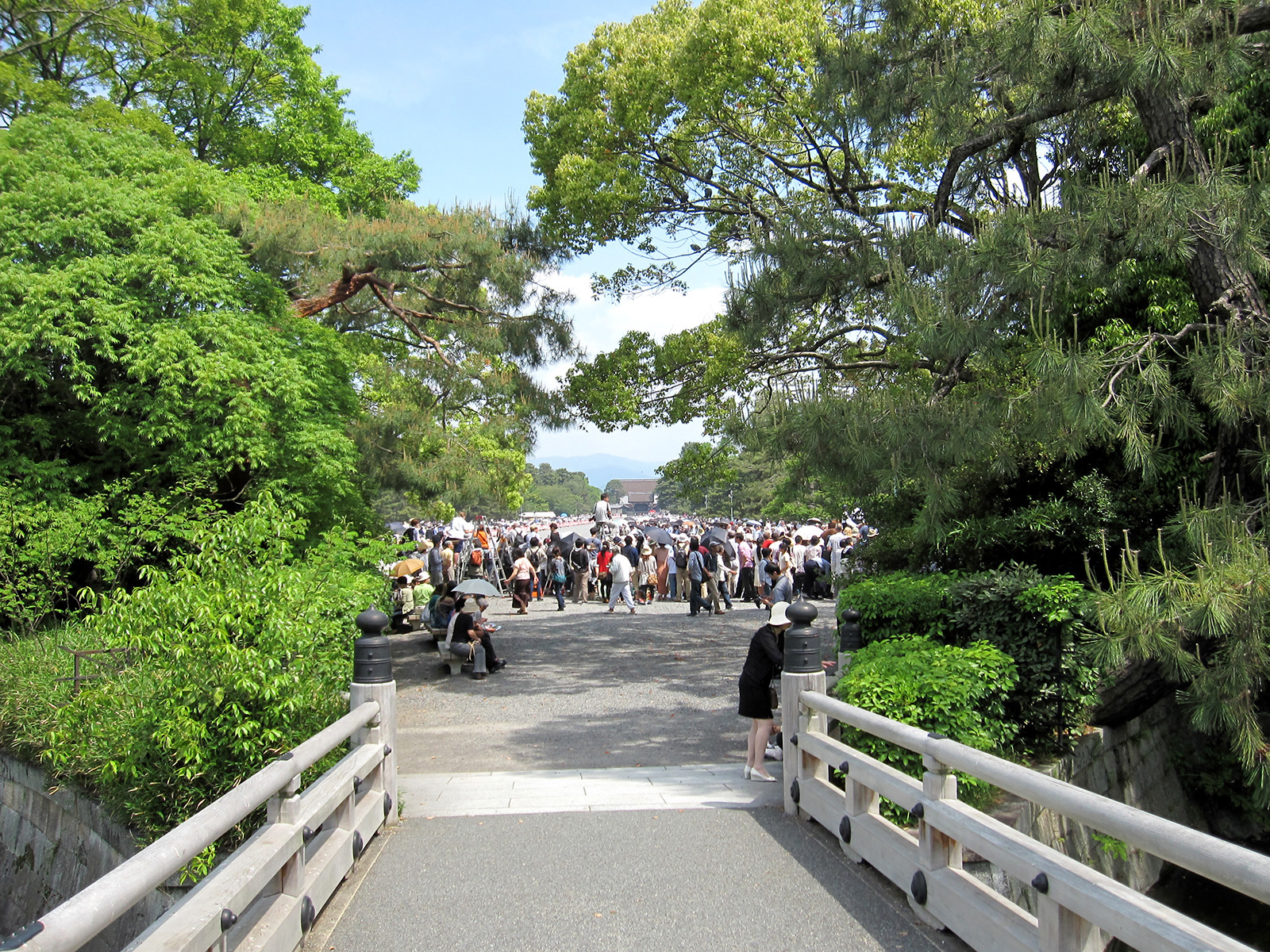 Kan säga att det märktes ganska tidigt att det var något på gång idag. Tog tunnelbanan mot Kyotos kejsarpalats, där själva paraden börjar. Visst, när jag gick på var det inte så mycket folk, men nästa hållplats var centralstationen. Tyckte det blev ganska lagom packat då, men ändrade mig snart. Näst sista stationen innan jag skulle av var där Kyotos enda två linjer korsar varandra… Tror inte jag behöver säger mer än så! Det var kö från plattformen man går av tåget vid hela vägen till palatset. Yay!
