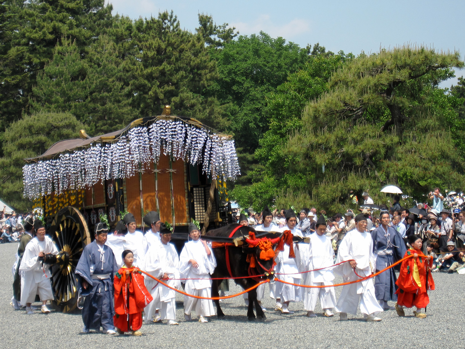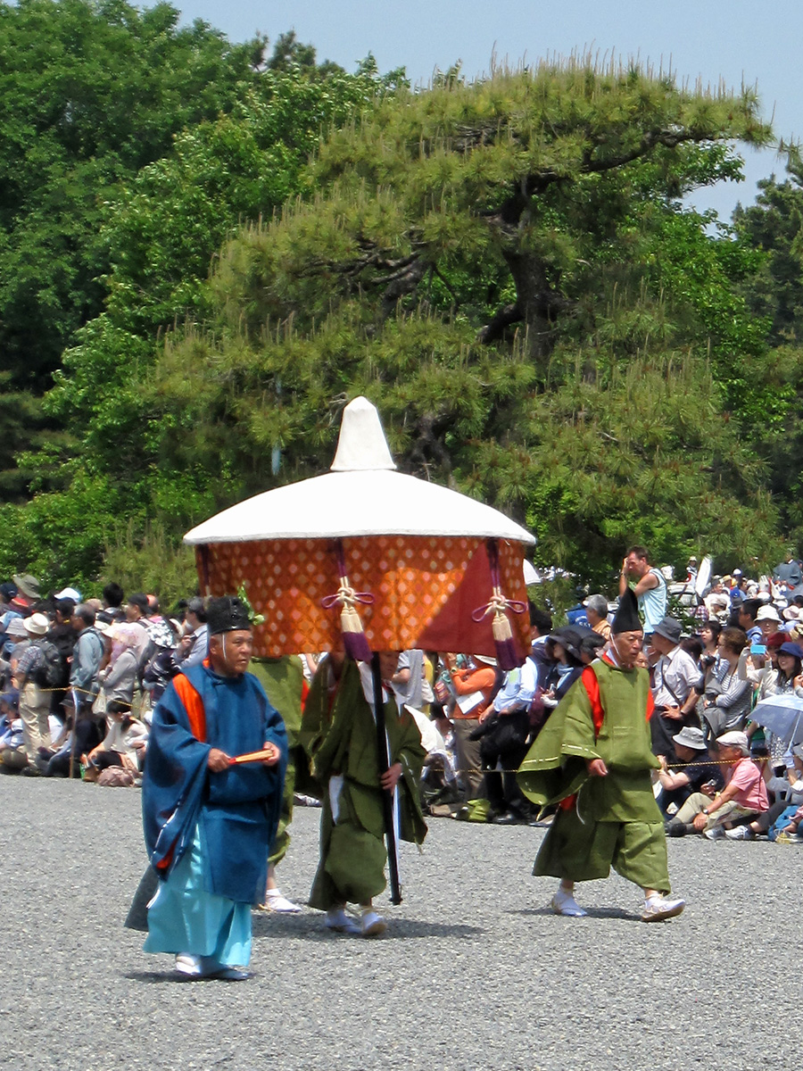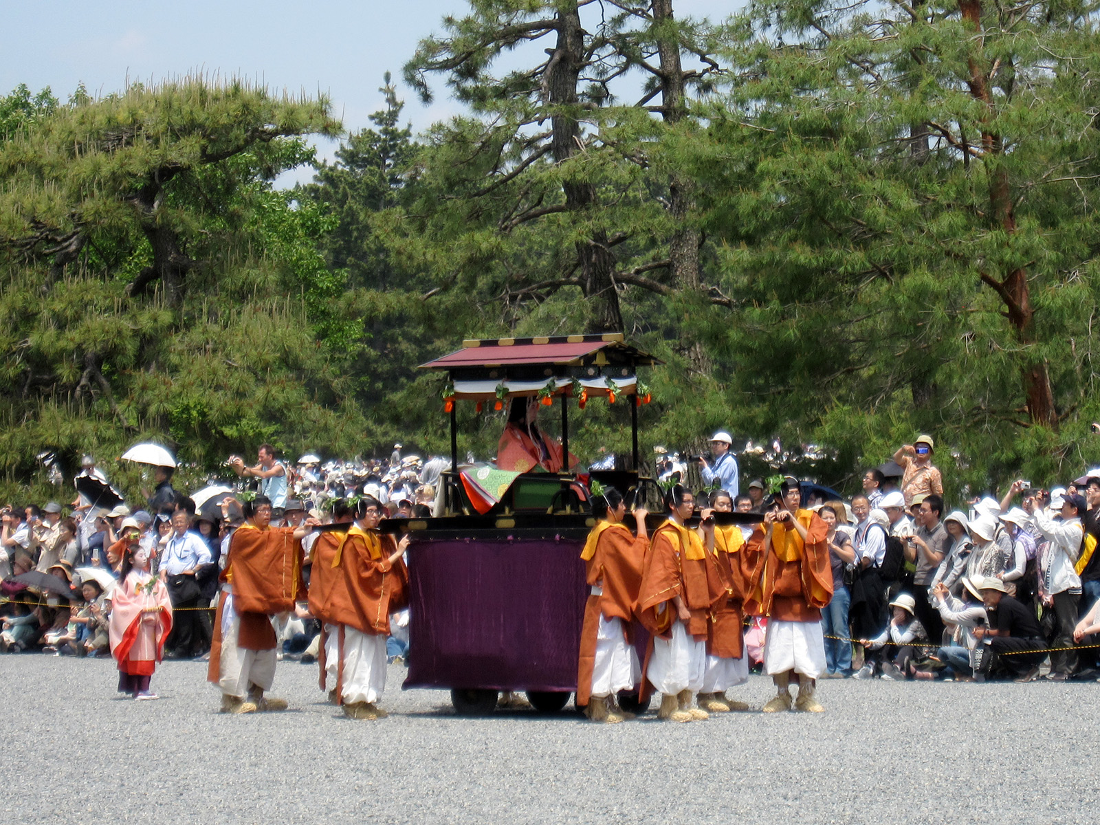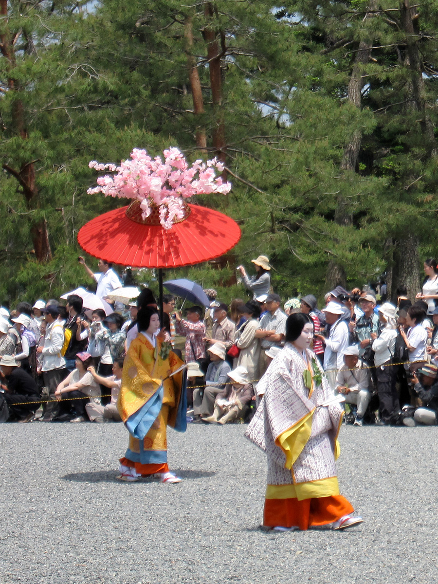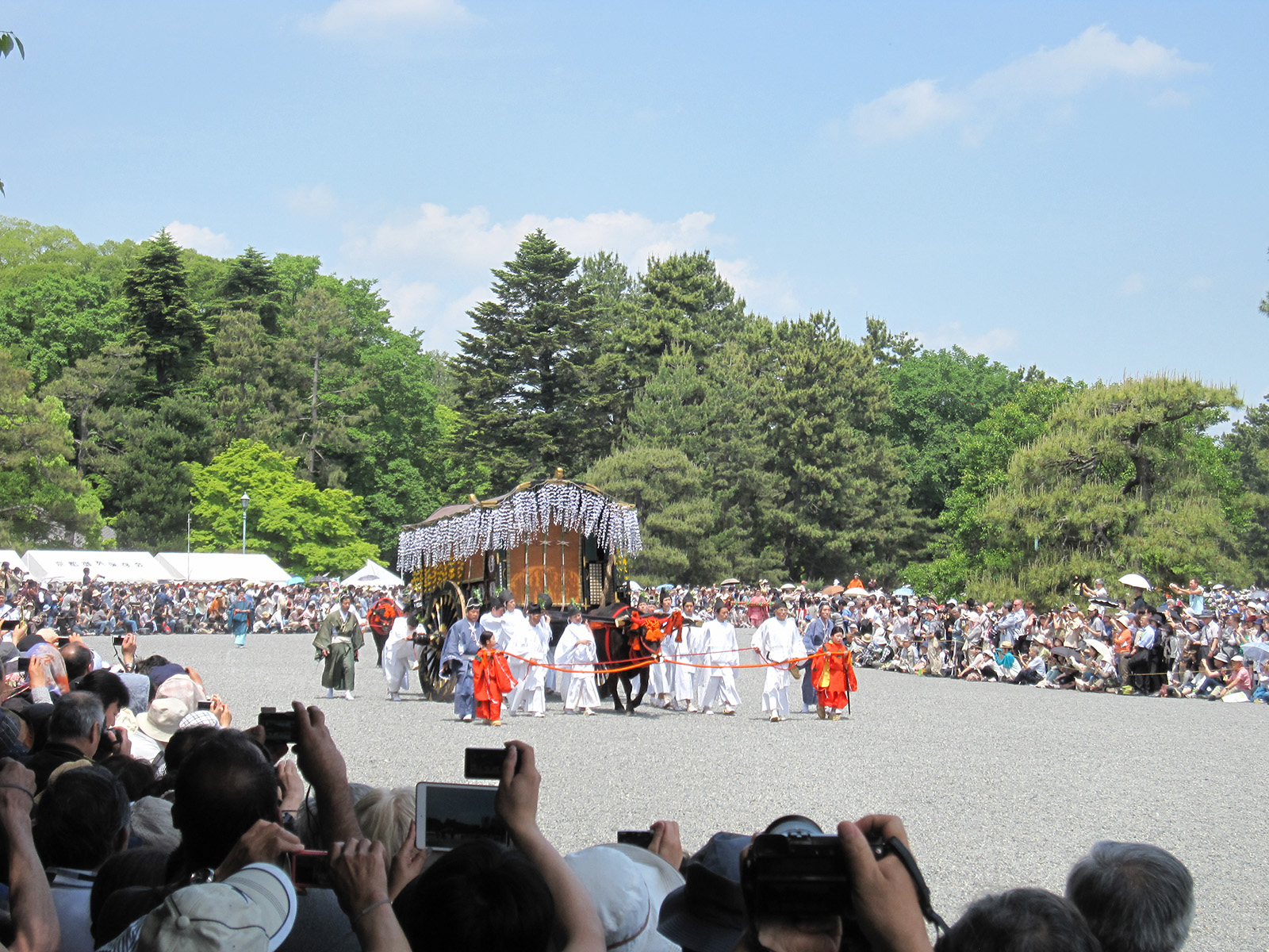 Idag har jag varit på en av Kyotos tre största festivaler! Den kallas för aoi matsuri, eller stockrosfestivalen som vi skulle sagt på svenska. Eller egentligen skulle man kunna kalla det en parad, för det kändes inte jättemycket som en festival (som jag tänker mig i alla fall). I vilket fall deltog detta året 511 personer klädda i traditionella kläder från heian-perioden, tillsammans med 36 hästar, 4 kor och 2 vagnar. Har läst lite om festivalen tidigare och den är tydligen nästan 1500 år gammal! Snacka om att hålla fast vid traditioner o_o Tror den har haft några kortare uppehåll då och då, men totalt har den säkert hållits minst 1000 år. Kommer inte skriva så mycket idag, låter bilderna tala. Det blev ganska många även efter att jag sorterade ut dom bästa…