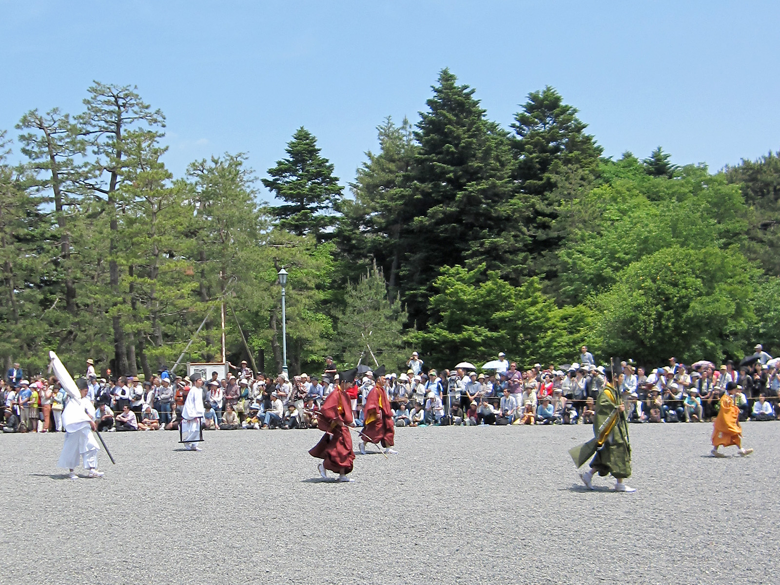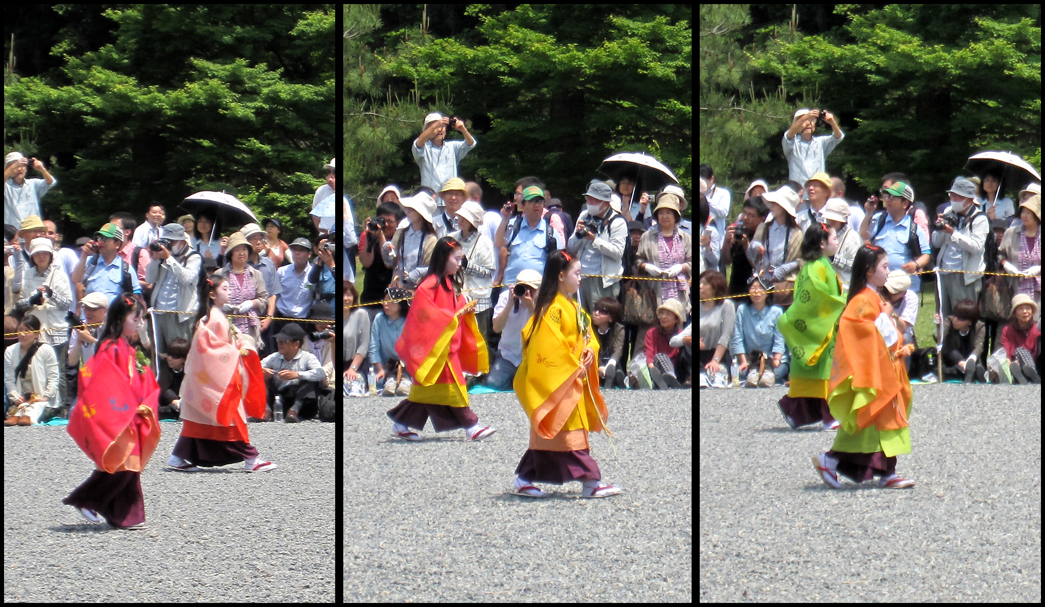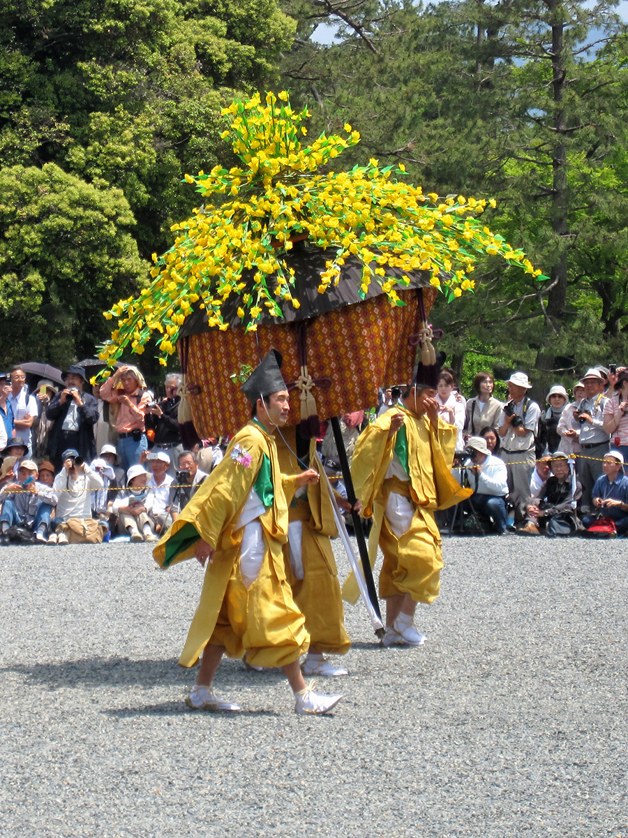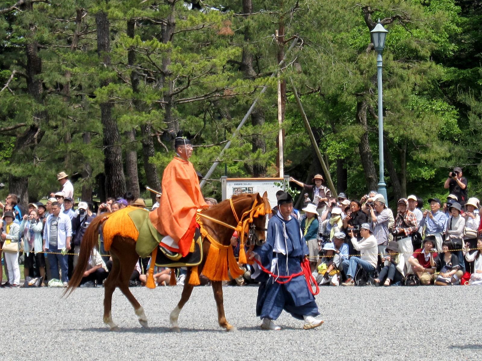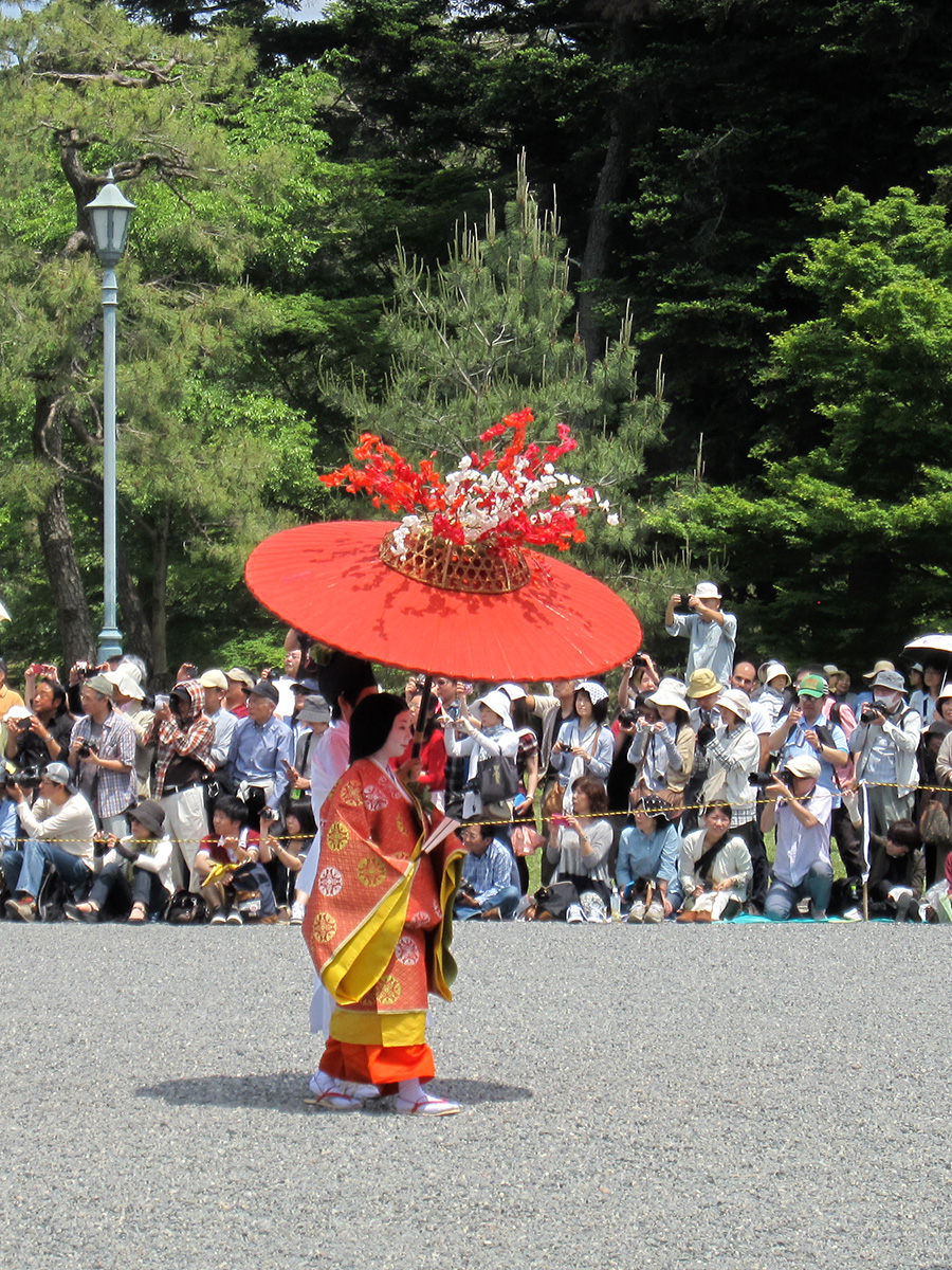 Idag har jag varit på en av Kyotos tre största festivaler! Den kallas för aoi matsuri, eller stockrosfestivalen som vi skulle sagt på svenska. Eller egentligen skulle man kunna kalla det en parad, för det kändes inte jättemycket som en festival (som jag tänker mig i alla fall). I vilket fall deltog detta året 511 personer klädda i traditionella kläder från heian-perioden, tillsammans med 36 hästar, 4 kor och 2 vagnar. Har läst lite om festivalen tidigare och den är tydligen nästan 1500 år gammal! Snacka om att hålla fast vid traditioner o_o Tror den har haft några kortare uppehåll då och då, men totalt har den säkert hållits minst 1000 år. Kommer inte skriva så mycket idag, låter bilderna tala. Det blev ganska många även efter att jag sorterade ut dom bästa…