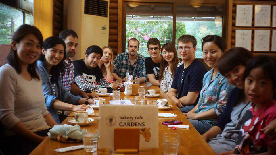 - Varit på grillkalas i bergen hos en klasskompis som bor en bit utanför Kyoto. Vi var ett gäng som kände varandra sedan innan, samt Rays frus kompisar också, så det blev lite blandat folk och det var väldigt trevligt. Synd bara att regnet öste ner från att vi kom dit och resten av dagen (det var samma helg som tyfonen drog in över oss, så på kvällen blev det ännu värre), men vi hade skoj ändå! När vi började frysa lite gick vi till ett café istället och där passade vi också på att ta ett gruppfoto!