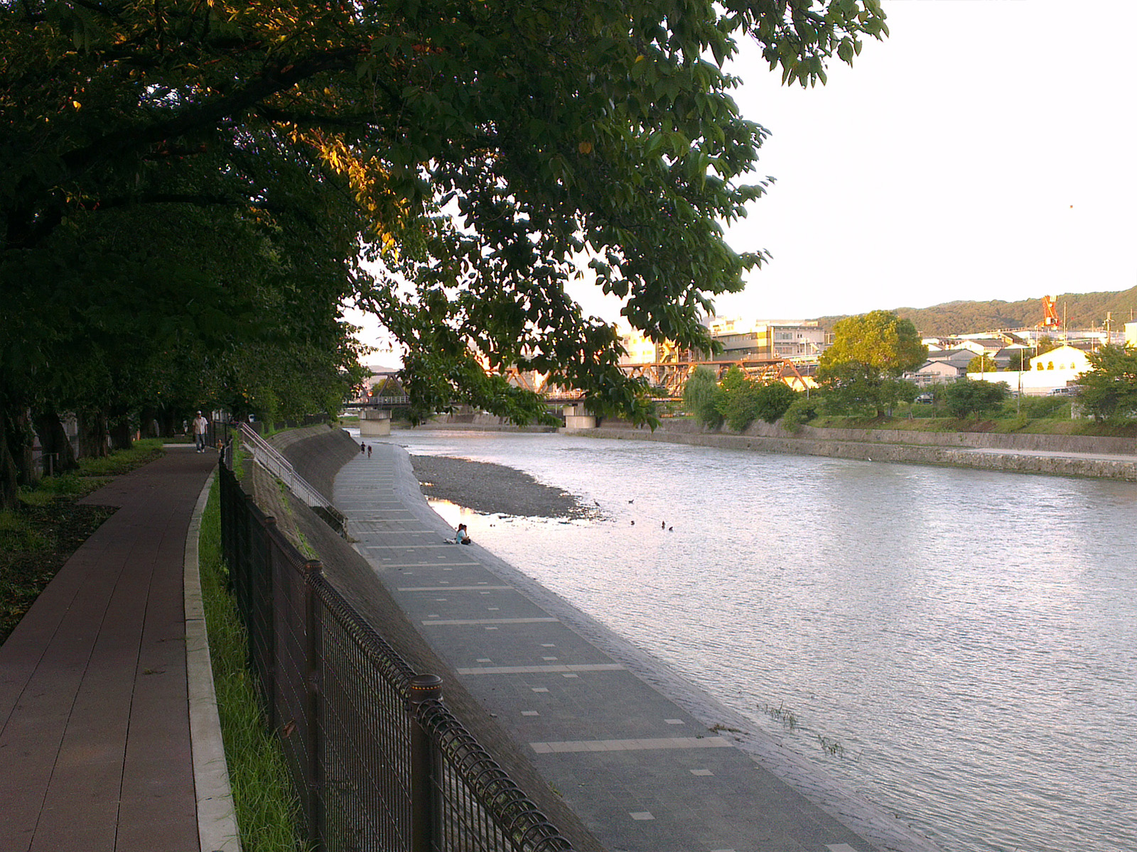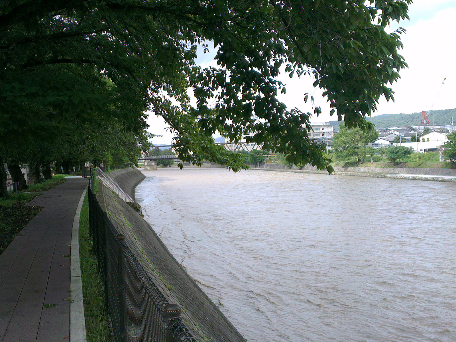 För ett par veckor sedan (eller när det nu var) drog det in en ordentlig tyfon över Japan. Det blåste inte så farligt mycket, men det regnade något enormt i minst 12 timmar i sträck (konstant i säkert 16-18 timmar). Och med enormt menar jag verkligen enormt. Det är svårt att förklara utan att det låter helt knasigt, men när det regnar mycket här känns det nästan som att det skulle kunna gå att simma i luften om man så ville. Fick väldiga varninar på min mobil hela natten om att det var risk för översvämning, jordskred och enorma mängder vatten överallt. Enligt varningarna regnade det i snitt (som jag snabbt räknade ut i huvudet, så ta det med en nypa salt) ungefär 20 millimeter i timmen, konstant hela natten. På tio timmar blir det alltså 20 centimeter vatten överallt om det inte hade runnit undan. Som tur är finns det gott om utrymme i floderna här i staden, men tänk ändå hur många kubikmeter vatten det blir som ska ta sig till ett och samma ställe. Den ena av dom stora floderna här svämmade över och tusentals människor fick faktiskt evakuera från sina hem. Floden som är närmst mig är också den största, så den klarade trycket även om den också blev rejält fylld. Vanligtvis kan man gå på en gångbana vid sidan av floden, men den var helt översvämmad även flera timmar efter att regnet hade slutat (då jag till slut vågade mig ut igen).