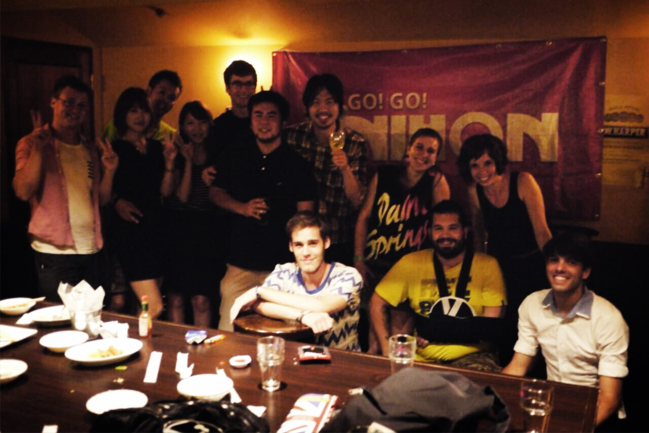 I slutet på augusti hade Go! Go! Nihon (dom snälla själarna som hjälpte mig att hitta till Japan) ett internationellt party på en pub här i Kyoto. Det var det första sedan jag kommit hit, så jag var ganska pepp på att gå dit och träffa japaner och kanske skaffa lite fler vänner att öva japanska med. Tanken är att det ska vara ungefär 50/50 japaner och folk från andra länder. Till att börja med var vi dock endast två svenskar, i kanske en trekvart eller något innan det började dyka upp fler folk. Totalt blev vi 12 pers tror jag, varav hela 5 var italierare och satte sig i en egen grupp för att prata högt tillsammans (ni som varit i Italien förstår säkert vad jag menar). Resten av oss satte oss i en egen klunga och var mer blandade nationaliteter; tre från Japan, en från Taiwan, en från Korea och jag och min klasskompis Chris från Sverige. I huvudsak pratade vi Japanska, eftersom det var det mest gemensamma språket för alla.
